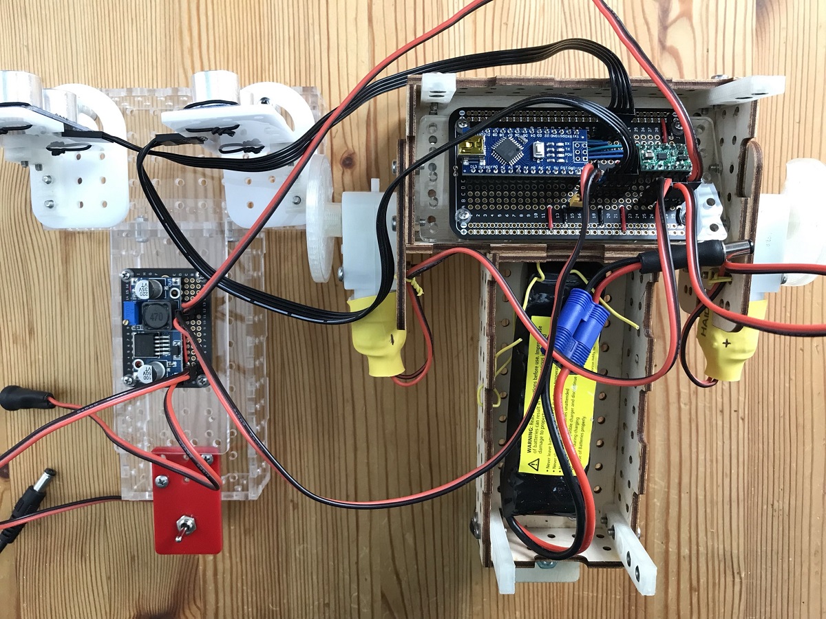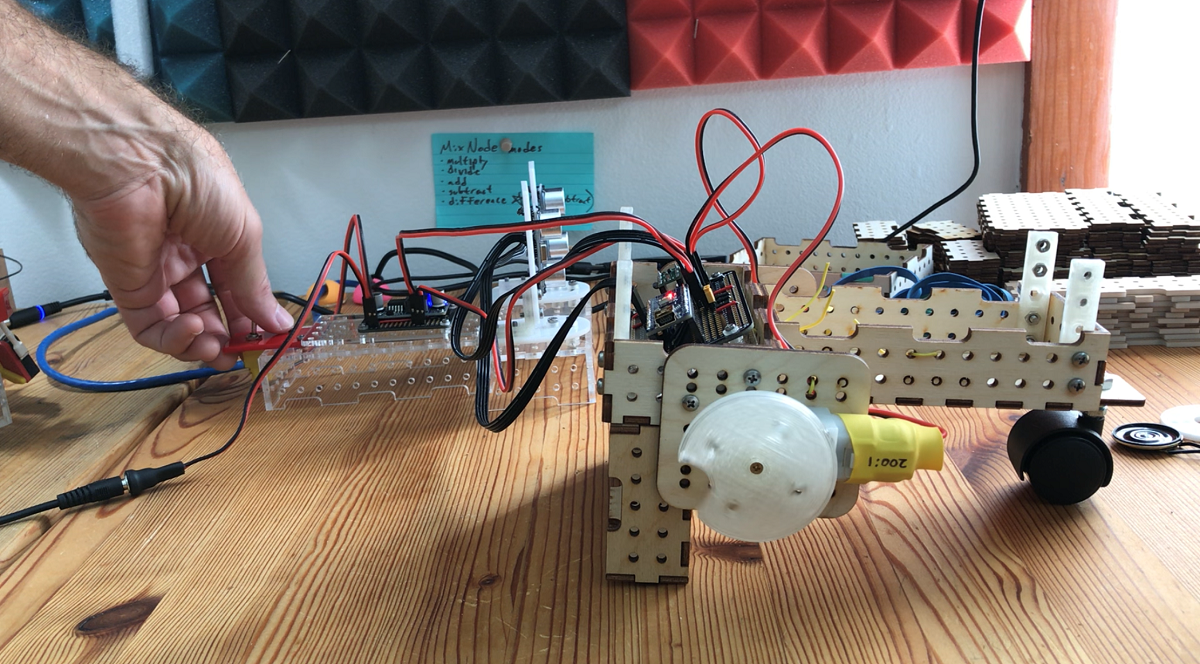The name is a direct nod to Valentino Braitenberg — specifically "Vehicle 2" from his book, Vehicles: Experiments in Synthetic Psychology. Braitenberg’s thought experiments showed how little logic you actually need to simulate what looks like intent, and he really burned those concepts into my brain. Along with Braitenberg, Valentino is influenced by builders like William Grey Walter, who brought the first robotic "turtles" to life, and Mark Tilden, who proved that simple, four-neuron architectures are often more robust than complicated ones. Like them, I’m interested in the "why" of building—the idea that behavior doesn't require complexity. I don’t treat Valentino like a lab specimen; it’s a working machine. I like to take it out into real environments, like woodshops or gravel paths, and just let it navigate. It doesn’t have a complex brain—it just reacts to the world through a direct loop between its ultrasonic sensors and its wheels.